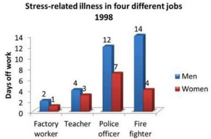 Sample Answer of The Chart Shows Days Taken Off Work Due to Stress-Related Illnesses by Job for Men and Women