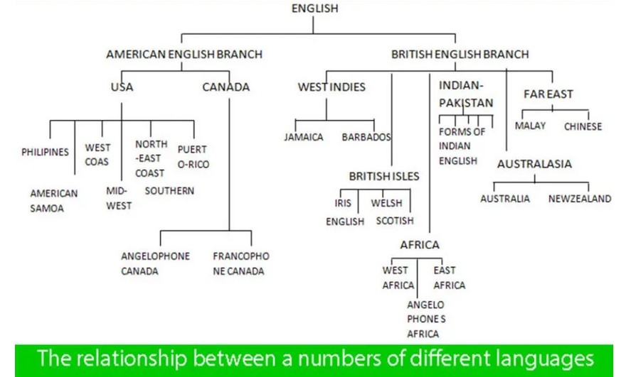 It is clear that American English Branch is mainly set up by the USA as well as Canada. But, it has a sub-category. On the other hand, British English Branch is primely built up by Australia and New zealand. Although, it also has a lot of sub-categories.